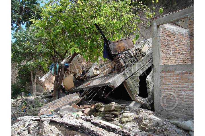 CHILPANCINGO, GUERRERO., 25OCTUBRE2007.- Aspecto de como quedo la casa de la familia Alcocer Solano ubicada en la colonia primero de Mayo, debido a un deslizamiento de tierra provocado por las intensas lluvias que se registraron en dias pasados en la capital del estado. FOTO: OSCAR ALVARADO/CUARTOSCURO.COM