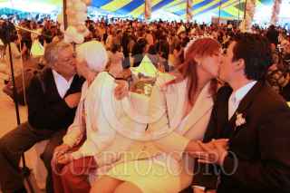 MÉXICO D.F. 26OCTUBRE2007.-En la explanada de la delegación Ixtacalco, se realizó el primer evento de ¨Matrimonios Colectivos¨ donde 150 parejas de diversas edades contrajeron matrimonio.Esto como parte del programa ¨La Familia es la Base de la Sociedad¨. FOTO: GUILLERMO PEREA/CUARTOSCURO.COM