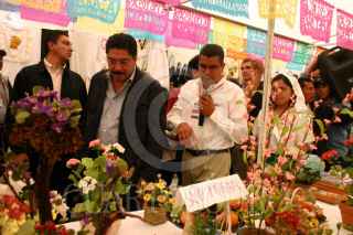 OAXACA, OAXACA 26OCTUBRE.-El gobernador del estdo de Ulises Ruiz inauguro hoy sobre el andador turístico de la ciudad la muestra de artesanías, y la vendimia de las mismas, también una expocision de costumbres alusivas al mes de noviembre que el gobierno y turismo organizan.En la imagen se observa la realización de un tapete para la ofrenda del dia de Muertos FOTO: MAX NUÑEZ/CUARTOSCURO.COM