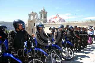 OAXACA, OAXACA 26OCTUBRE2007.-El gobernador del estado Ulises Ruiz Ortiz, aplico hoy el plan festivo donde se pretende organizar y resguardar por parte de operativos policíacos de la policía ministerial y preventiva por lo que esta misma tarde entrego equipo, 3 camionetas y 25 motos con el fin de una mayor coordinación para vigilancia. FOTO: MAX NUÑEZ/CUARTOSCURO.COM