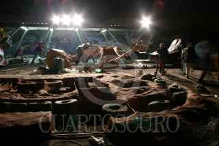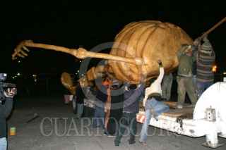 MÉXICO D.F. 31OCTUBRE2007.- Trasladan durante la madrugada de hoy a las calaveras gigantes realizadas en la Fabrica de Artes y Oficios (FARO) de Oriente hacia la plancha del zocalo capitalino para la cebracion del dia de muertos. FOTO: SAUL LOPEZ/CUARTOSCURO.COM