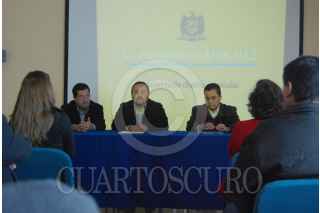 ZACATECAS, ZACATECAS., 1NOVIEMBRE2007.- Se presentó el proyecto de licenciatura en artes de la universidad autónoma de Zacatecas. En la imagen el Dr.Fransisco Luna Pacheco, coordinador de la unidad de planeación de la UAZ, el Mtro. Cuitlahuac Garcia Medina, coordinador de extensión universitaria de la UAZ y el Mtro. David Eduardo Rivera Salinas , director del Instituto Zacatecano de Cultura. FOTO: CARLOS SEGURA PÉREZ/CUARTOSCURO.COM