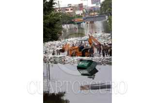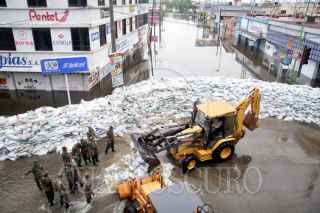 VILLAHERMOSA, TABASCO, 01NOVIEMBRE2007.- Elementos del Ejercito Mexicano trabajan arduamente al poner costales con arena para impedir que las aguas desbordadas del río Grijalva continué su paso. Las imágenes corresponden al boulevard Adolfo Ruiz Cortinez y Avenida Francisco Javier Mina. FOTO: MARCO POLO GUZMÁN HERNÁNDEZ/CUARTOSCURO.COM