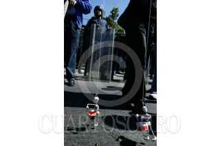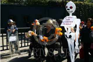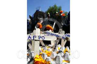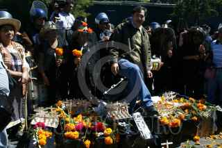 MÉXICO, D.F. 01NOVIEMBRE2007.- Gerardo Fernandez Noroña e integrantes de la Convención Nacional Democrática se manifestaron a las afueras de la Residencia Oficial de Los Pinos. Ataudes y Flores de zempasuchitl fueron colocadas frente a la entrada principal. FOTO: PAOLA HIDALGO/CUARTOSCURO.COM