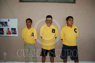 ACAPULCO, GUARRERO. 01NOVIEMBRE2007.- La Policía Ministerial, presento ayer a Pedro Ramírez Flores, alias el Morsa o el meter, Javier Sánchez Marroquín “El Pata” y Román Soto Olea “ El Chito” como presuntos responsables de asaltos a bancos y comercios establecidos. FOTO: MARINO DE VALDEZ/CUARTOSCURO.COM