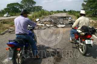 CUNDUACAN, TABASCO, 08NOVIEMBRE2007.- Diversas carreteras del estado de Tabasco estan totalmente deslavadas y dañadas despues de la fuerte inundación,dejando incomunicados por via terrestre a diversas rancherias y comunidades del estado. FOTO: SAÚL LÓPEZ/CUARTOSCURO.COM