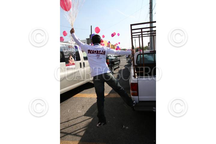 MORELIA, MICHOACÁN 10NOVIEMBRE2007.-Consejeros y empleado del Instituto Electoral de Michoacán (IEM) realizaron una caravana para promocionar el voto de la ciudadanía en las elecciones para gobernador y diputados, que se llevara acabo el día de mañana en esta entidad.En la imagen María de los Angeles Llanderal presidete del Consejo. FOTO: GUILLERMO PEREA/CUARTOSCURO.COM