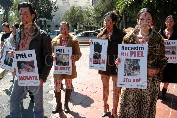 MÉXICO D.F., 10NOVIEMBRE2007.- Integrantes de la organización Anima Naturalis se manifiestan por la matanza de animales para crear prendas finas de piel a las afueras de un centro comercial en la colonia Polanco. FOTO: RODOLFO ANGULO/CUARTOSCURO.COM