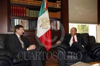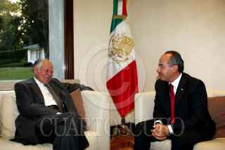 MEXICO D.F. 14 DE NOVIEMBRE DEL 2007.- El presidente Felipe Calderón Hinojosa recibió en los pinos al presidente del Royal Dutch Shell, Jeroen Van Deer Ver. FOTO: ALFREDO GUERRERO/CUARTOSCURO.COM