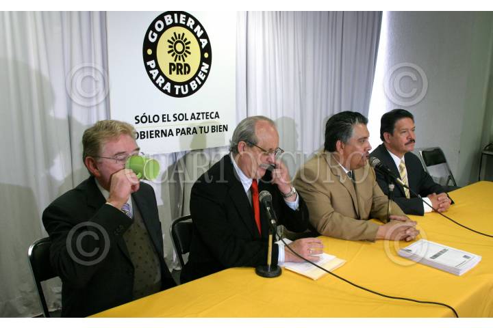 MÉXICO, D.F., 15NOVIEMBRE2007.- Los perredistas Javier González Garza, coordinador de sus diputados federales, Graco Ramírez, senador, Guadalupe Acosta, Secretario General del partido y Carlos Navarretes, coordinador de sus senadores, ofrecieron una conferencia de prensa para hablar sobre el tema de Pemex. FOTO: MOISÉS PABLO/CUARTOSCURO.COM