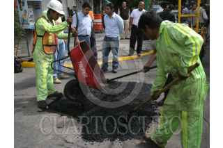 MÉXICO, D.F., 15NOVIEMBRE2007.- Empleado del gobierno del DF tapan un bache en las calles de Sinaloa y Veracruz en la colonia Roma en el marco de del programa Caza Baches. FOTO: MOISÉS PABLO/CUARTOSCURO.COM