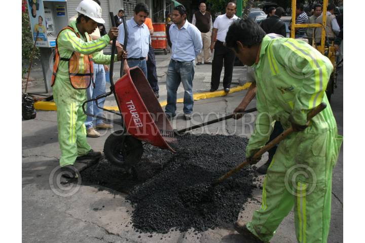 MÉXICO, D.F., 15NOVIEMBRE2007.- Empleado del gobierno del DF tapan un bache en las calles de Sinaloa y Veracruz en la colonia Roma en el marco de del programa Caza Baches. FOTO: MOISÉS PABLO/CUARTOSCURO.COM