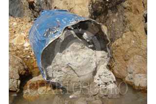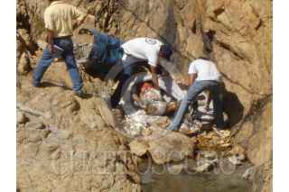 ACAPULCO, GUERRERO, 15NOVIEMBRE2007.- El cuerpo de un desconocido fue localizado dentro de un tambo de fierro azul lleno de cemento, las manos atadas hacia atrás y la cara tapada con cinta industrial gris y ambos pies tenia colocados unos grillete, el hallazgo cadavérico ocurrió en los acantilados de playa Olvidada, informó el coordinador operativo de la Policía Ministerial, Jaime Ramírez Manzanarez. FOTO: MARINO D. VALDEZ/CUARTOSCURO.COM
