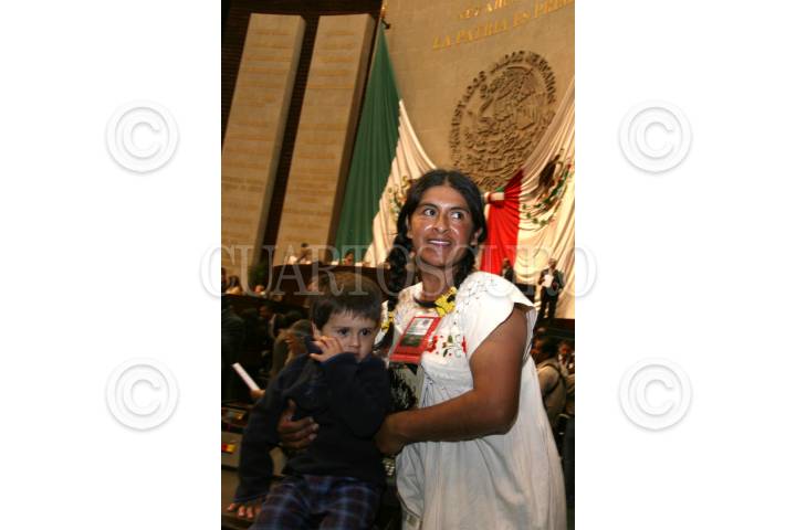MÉXICO D.F. 16NOVIEMBRE2007.-Una lider de migrantes acude con su hijo a la inauguración del ¨Primer Parlamento de Líderes Migrantes Mexicanos que Viven en Estados Unidos de América¨esto en la Cámara de Diputados. FOTO: GUILLERMO PEREA/CUARTOSCURO.COM