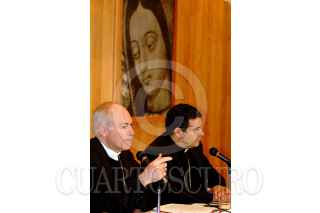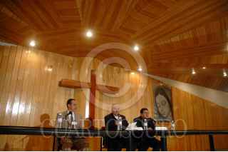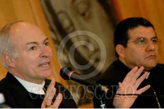CUAUTITLAN-IZCALLI, EDOMEX 16NOVIEMBRE2007.- Mons. Carlos Aguiar Retes, Obispo de Texcoco y Presidente de la CEM y Mons. Faustino Armendáriz, obispo de Matamoros al finalizar la conferencia de prensa en la sede de la Conferencia del Episcopado Mexicano. FOTO: RODOLFO ANGULO/CUARTOSCURO.COM