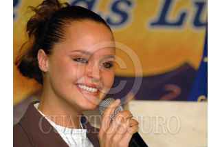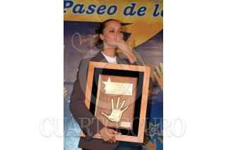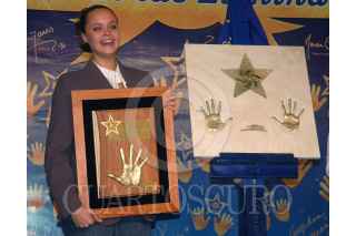 MÉXICO D.F., 16NOVIEMBRE2007.- La cantante Shaila Durcal llora de felicidad después de haber recibido como homenaje la placa con la huella de su mama Rocio Durcal en la Plaza de las Estrellas. FOTO: RODOLFO ANGULO/CUARTOSCURO.COM