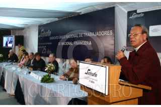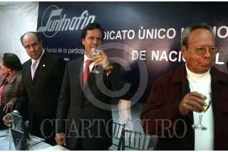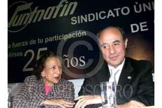 MÉXICO D.F., 16NOVIEMBRE2007.- Ifigenía Martínez, fundadora del PRD y Carlos Sales Gutierrez ex director general de Nacional Financiera, Guillermo Babatz Torres, presidente de la Comisión Nacional Bancaria y de Valores, y Jesus Silva Herzog Flores ex secretario de Hacienda durante el brindis por el festejo del25 aniversario del Sindicato Unico Nacional de Trabajadores de NAFINSA. FOTO: SAÚL LÓPEZ/CUARTOSCURO.COM