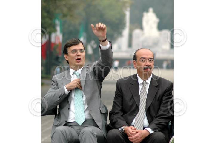 MÉXICO D.F., 22NOVIEMBRE2007.- El jefe de gobierno capitalino Marcelo Ebrard conversa con Adriana Perez Romo de López Doriga del Consejo Rector Ciudadano y esposa del periodista Joaquín López Doriga al finalizar el evento de la develación de la placa por los Cien Años del Bosque de Chapultepec. FOTO: RODOLFO ANGULO/CUARTOSCURO.COM