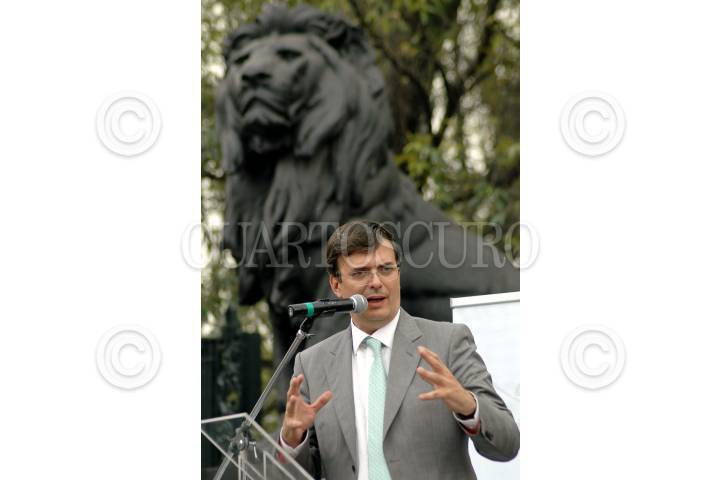 MÉXICO D.F., 22NOVIEMBRE2007.- El jefe de gobierno capitalino Marcelo Ebrard conversa con Adriana Perez Romo de López Doriga del Consejo Rector Ciudadano y esposa del periodista Joaquín López Doriga al finalizar el evento de la develación de la placa por los Cien Años del Bosque de Chapultepec. FOTO: RODOLFO ANGULO/CUARTOSCURO.COM