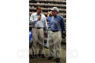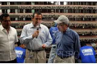 VILLAHERMOSA, TABASCO, 20NOVIEMBRE2007.-El gerente regional de Telmex, Jesús Vázquez, informo ante el titular de la Secretaria de Comunicaciones y Transporte Luís Tellez; que de 218 mil líneas fijas a las que la compañía da servicios en esta entidad, 83 mil 300 quedaron fuera de operación debido a las contingencias de inundación. Así mismo detallo que se han invertido cuatro millones de dólares, y que en total se aplicaran 21 millones de dólares en la reconstrucción de toda la red telefónica. FOTO: MARCO POLO GUZMÁN HERNÁNDEZ/CUARTOSCURO.COM