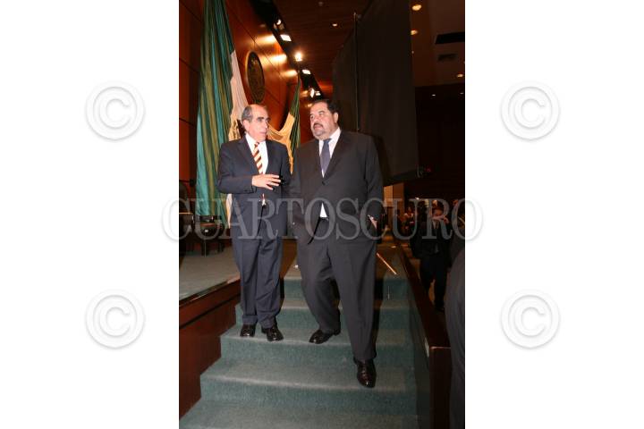 MÉXICO D.F. 22NOVIEMBRE2007.- Los diputados, Hector Larios del PAN, Ruth Zavaleta, el Senador Pablo Gómez ambos del PRD, el ex-senador del PRI Enrrique Jackson Ramiréz y el analista político Francisco Paoli Bolio, al termino de la ceremonia por el Decimo Aniversario de la Gaceta Parlamentaria, esto en la Cámara de Diputados. FOTO: GUILLERMO PEREA/CUARTOSCURO.COM