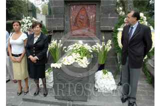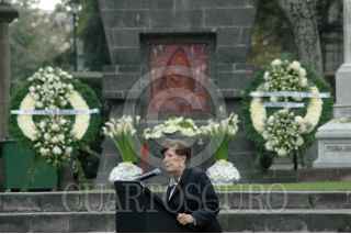 MÉXICO D.F. 24NOVIEMBRE2007.- Guadalupe Rivera Marín, hija del pintor junto con amigos y familiares montan una guardia de honor por la conmemoración del 50 aniversario luctuoso del artista en la Rotonda de Hombres Ilustres. FOTO: RODOLFO ANGULO/CUARTOSCURO.COM