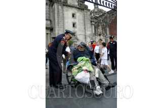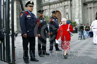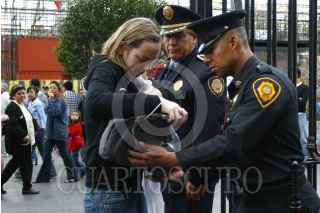 MÉXICO, D.F. 25NOVIEMBRE2007.- Se implemento un dispositivo de seguridad a las afueras de la Catedral Metropolitana. Policías revisan las bolsas y mochilas de feligrases. FOTO: PAOLA HIDALGO/CUARTOSCURO.COM