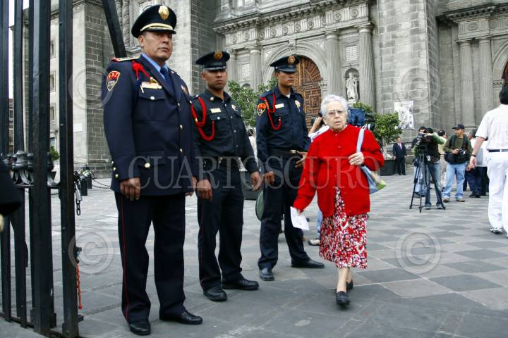 MÉXICO, D.F. 25NOVIEMBRE2007.- Se implemento un dispositivo de seguridad a las afueras de la Catedral Metropolitana. Policías revisan las bolsas y mochilas de feligrases. FOTO: PAOLA HIDALGO/CUARTOSCURO.COM