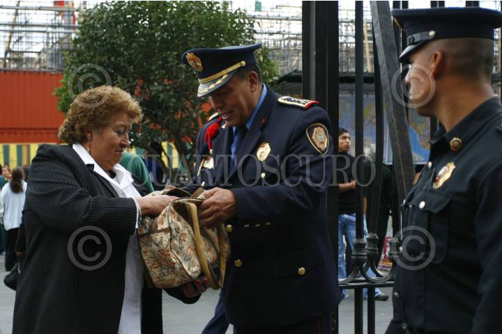 MÉXICO, D.F. 25NOVIEMBRE2007.- Se implemento un dispositivo de seguridad a las afueras de la Catedral Metropolitana. Policías revisan las bolsas y mochilas de feligrases. FOTO: PAOLA HIDALGO/CUARTOSCURO.COM