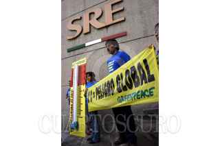 MÉXICO. D.F., 29NOVIEMBRE2007.- Esta mañana un grupo de GREENPEACE hizo una demostración sobre el cambio climático en el patio central de la secretaría de relaciones exteriores, con el fín de hacer conciencia sobre el calentamiento global. FOTO:URIEL ROLDAN AGUILAR/CUARTOSCURO.COM