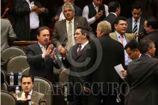 MÉXICO D.F. 29NOVIEMBRE2007.-Emilio Gambo Patrón diputado del PRI y Javier González Garza diputado y coordinador de la bancada del PRD dialógan, durante la sesión ordinaria en la Cámara de Diputados. FOTO: GUILLERMO PEREA/CUARTOSCURO.COM