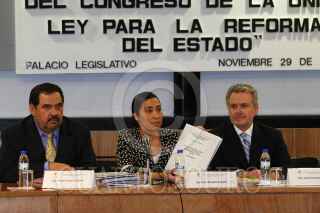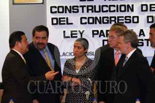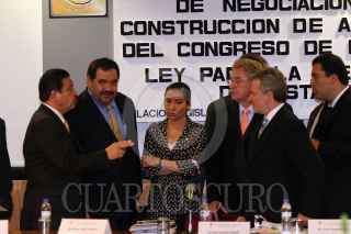 MÉXICO D.F. 29NOVIEMBRE2007.-El senador del PRD, Carlos Navarrete, Hector Larios diputado del PAN, Ruth Zavaleta, Javier González Garza, ambos diputados del PRD y el senador Santiago Creel, momentos antes de la conferencia de prensa ante los medio sobre los resultados de la CENCA. FOTO: GUILLERMO PEREA/CUARTOSCURO.COM
