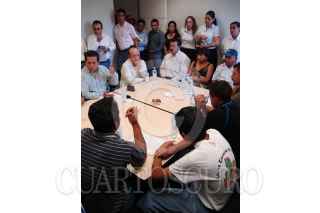 CHILPANCINGO, GUERRERO, 29NOVIEMBRE2007.- El presidente de la CODDEHUM Juan Alarcon Hernandez, durante la reunion que sostuvo el presidente de la comision de gobierno del Congreso local Carlos Reyes Torres, con egresados y estudiantes de la normal rural de Ayotzinapa y con los dirigentes de la APPG, en el interior del poder legislativo. FOTO: OSCAR ALVARADO/CUARTOSCURO.COM