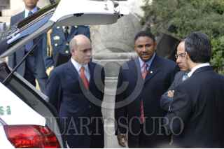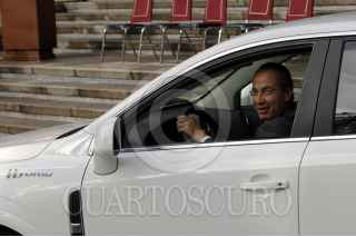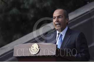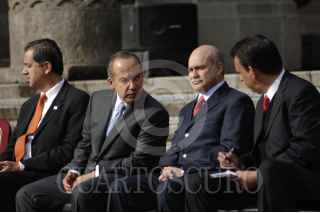 MÉXICO,D.F30NOVIEMBRE2007.- Juan Rafael Elvira titular de la Semarnat,Felipe Calderon Hinojosa presidente de los Stados Unidos Mexicanos Eduardo Sojo secretario de economia, Humberto Moreira Gobernador de Coahuila, durante la presentación del primer vehículo híbrido producido en México por el complejop Automotriz GM. FOTO: IVAN MENDEZ/CUARTOSCURO.COM