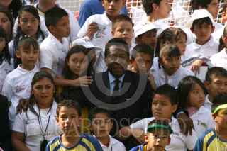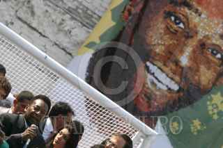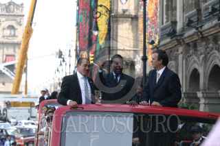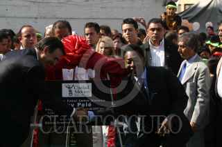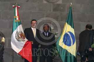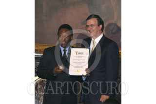 MÉXICO,D.F 30NOVIEMBRE2007.- Edsón Arante Do Nascimento, fue nombrado huésped distinguido por el gobierno del D.F. En la imagen el jefe de gobierno Marcelo Ebrard se toma la foto oficial con Pele. FOTO: SAÚL LÓPEZ/CUARTOSCURO.COM