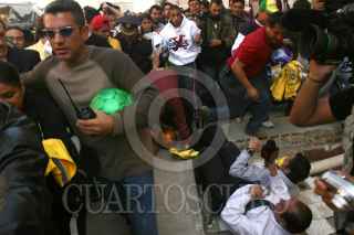 MÉXICO,D.F 30NOVIEMBRE2007.- Debido a la mala organización durante la visita de Edsón Arante Do Nascimento "Pele", reporteros y aficionados resultaron lesionados en el tumulto de personas que querian una imagen del astro del fútbol. FOTO: SAÚL LÓPEZ/CUARTOSCURO.COM