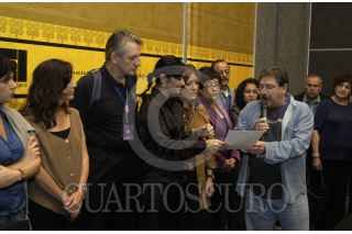 GUADALAJARA, JALISCO, 01DICIEMBRE2007.- Escritores e intelectuales realizaron un acto en apoyo a la periodista Lydia Cacho, en el marco de la Feria Internacional del Libro de Guadalajara. FOTO: CUARTOSCURO.COM
