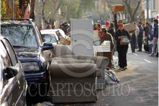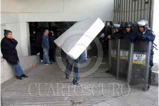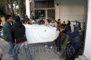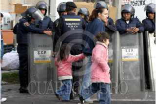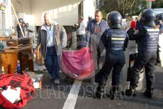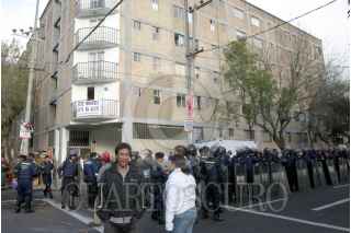 MÉXICO, D.F., 05DICIEMBRE2007.- Unas 100 familias fueron desalojadas de sus departamentos por policías granaderos en la calle de Pirineos 93, en la colonia Portales, tras haber sido defraudados por un sujeto al que estuvieron pagando el precio de la vivienda y tras un juicio fue ordenado el desalojo. FOTO: PEDRO MARRUFO/CUARTOSCURO.COM