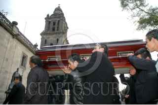 MÉXICO D.F., 05DICIEMBRE2007.- El féretro de Sergio Gomez, vocalista del grupo de pasito durangenze K-Paz de la Sierra arriba a la Catedral Metropolitana en donde se le oficio una misa de cuerpo presente en donde asistieron familiares, amigos y seguidores del artista. FOTO: RODOLFO ANGULO/CUARTOSCURO.COM