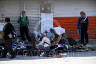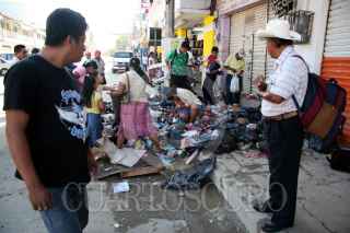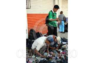 VILLAHERMOSA, TABASCO, 06DICIEMBRE2007.- Productos de limpieza personal; como talco, gel, faciales y entre mas que fueron desechados como basura a la calle Hermanos Bastar Sozaya y avenida Constitución son recogidos por personas damnificadas que no tienen como obtenerlos. FOTO: MARCO POLO GUZMÁN HERNÁNDEZ/CUARTOSCURO.COM