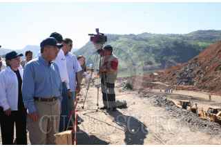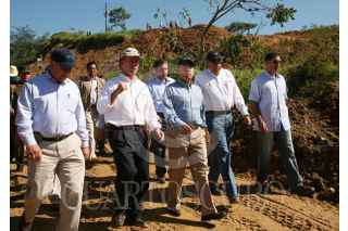 OSTUACAN, CHIAPAS., 06DICIEMBRE2007.-El presidente de México, Felipe Calderón Hinojosa, durante la supervisión de la obra para la remosión de escombros en el rio Grijava. FOTO: ALFREDO GUERRERO/CUARTOSCURO.COM