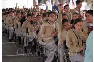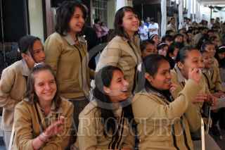 México D.F., a 6 de Diciembre de 2007.- Alumnos de la secundaría técnica No. 13, en la colonia Asturias, recibieron del Instituto Mexicano de la Juventud, la tarjeta "Poder Joven". FOTO: VICTORIA VALTIERRA/CUARTOSCURO.COM