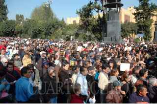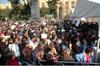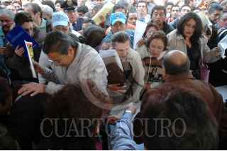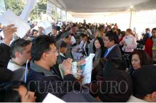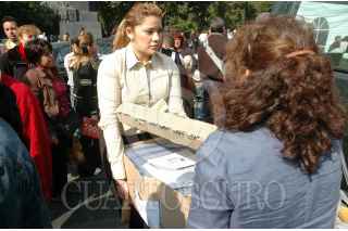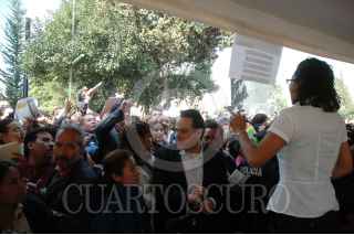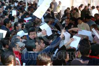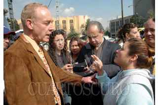MÉXICO D.F. 06DICIEMBRE2007.- Una señora beneficiaria del seguro del desempleo cuestiona al secretario de trabajo del DF Benito Mirón por la mala organización y la suspención de la entrega de tarjetas de debito de este programa en la explanada del Monumento a Revolución. FOTO: RODOLFO ANGULO/CUARTOSCURO.COM