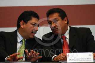 OAXACA, OAXACA., 07DICIEMBRE2007.- Herminio Cuevas Chavez y Ulises Ruiz en el informe que rindió hoy el presidente del tribunal superior de justicia del estado de Oaxaca, acompañado de distintos funcionarios, entre ellos el presidente de la gran comision de la camara de diputados de oaxaca. FOTO: MAX NUÑEZ/CUARTOSCURO.COM