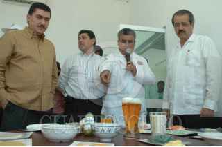 COLIMA, COLIMA., 06DICIEMBRE2007.- El secretario de salud, Jose Ángel Córdova Villalobos, en compañia del Gobernador del estado, Lic. Jesus Silverio Cavazos y secretarios de salud estatales les muestran alimentos para evitar el sobrepeso. FOTO: EDUARDO MORALES/CUARTOSCURO.COM