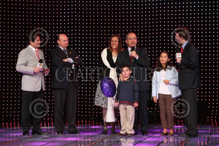 MEXICO D.F., 08DICIEMBRE2007.- Felipe Calderón Hinojosa, Presidente de México acompañado por su esposa Margarita Zavala y sus hijos Juan Pablo y María, acudieron a entregar su donativo para el Teletón 2007 en Televisa San Angel. FOTO: ALFREDO GUERRERO/CUARTOSCURO.COM