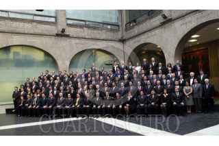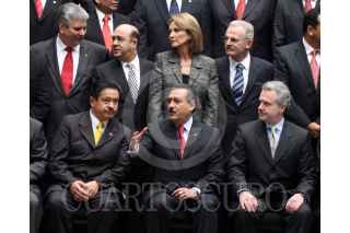 MÉXICO D.F., 13DICIEMBRE2007.- Los coordinadores parlamentarios del Senado de la Republica se tomaron la fotografía con los reporteros de la fuente. En la imagen Manlio Favio Beltrones, Santiago Creel y Carlos Navarrete. FOTO: CUARTOSCURO.COM