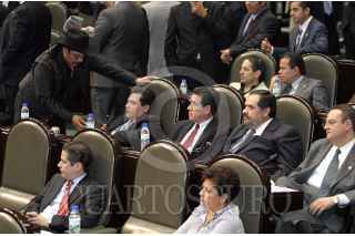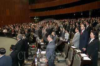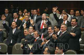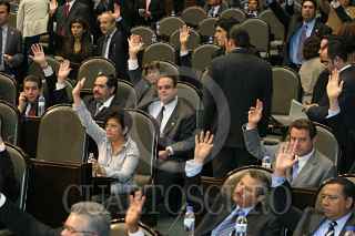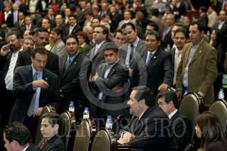 MEXICO, D.F. 13DICIEMBRE2007.- Los diputados del PAN, Andrés Bermudez conocido como "El rey del tomate", Diodoro Carrasco y Héctor Larios durante la sesión ordinaria en la Cámara de Diputados. FOTO:ROCIO ORTIZ/CUARTOSCURO.COM
