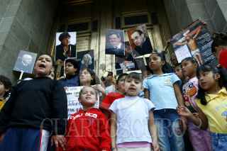 MÉXICO, D.F. 16DICIEMBRE2007.- Decenas de personas protestaron frente a la Suprema Corte de Justicia de la Nación debido al fallo ante el caso Lidya Cacho. Niños lanzaron huevos a las fotografías de los ministros y derramaron cognac a la estrada de la SCJN. FOTO: PAOLA HIDALGO/CUATOSCURO.COM