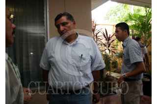 VILLAHERMOSA, TABASCO, 16DICIEMBRE2007.-El coordinador de la fracción parlamentaria del PRD, Adán Agusto López Hernández denuncio en rueda de prensa que el gobierno del Estado intentó "chantajerlos" para que les dieran el si en el edeudamiento de cuatro millones de pesos a cambio de la aprovación de las cuentas públicas de los municipios de Cárdenas y Macuspana. FOTO: MARCO POLO GUZMÁN HERNÁNDEZ/CUARTOSCURO.COM